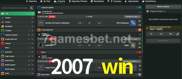 A aposta 2007 win oferece aos jogadores a experiência mais conveniente de apostas em eSports!